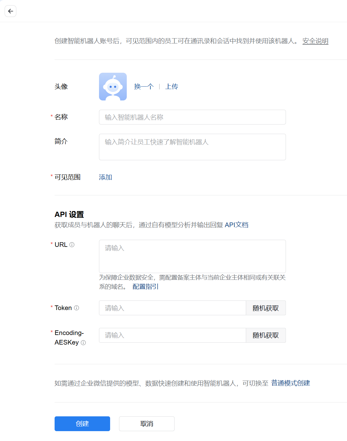 若智能机器人开启API模式,当用户跟智能机器人交互时,企业微信会向智能机器人API设置中的URL的回调地址推送相关消息跟事件。