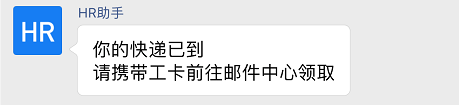 "content" : "你的快递已到\n请携带工卡前往邮件中心领取"