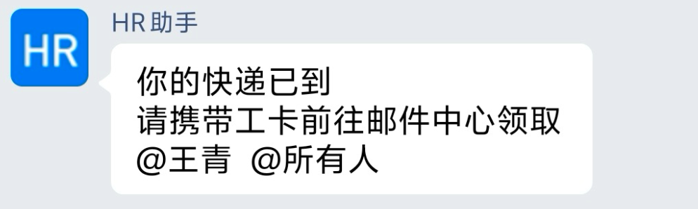 "content" : "你的快递已到\n请携带工卡前往邮件中心领取",
