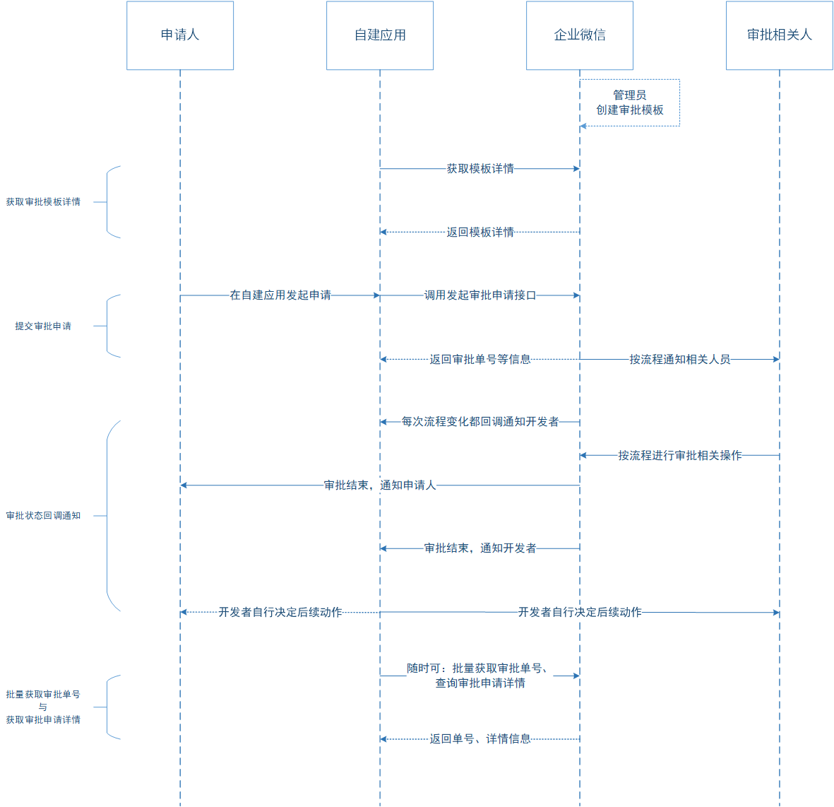 此外,还可通过“批量获取审批编号”、“获取审批申请详情”接口,随时获取审批申请的内容详情和流程状态。