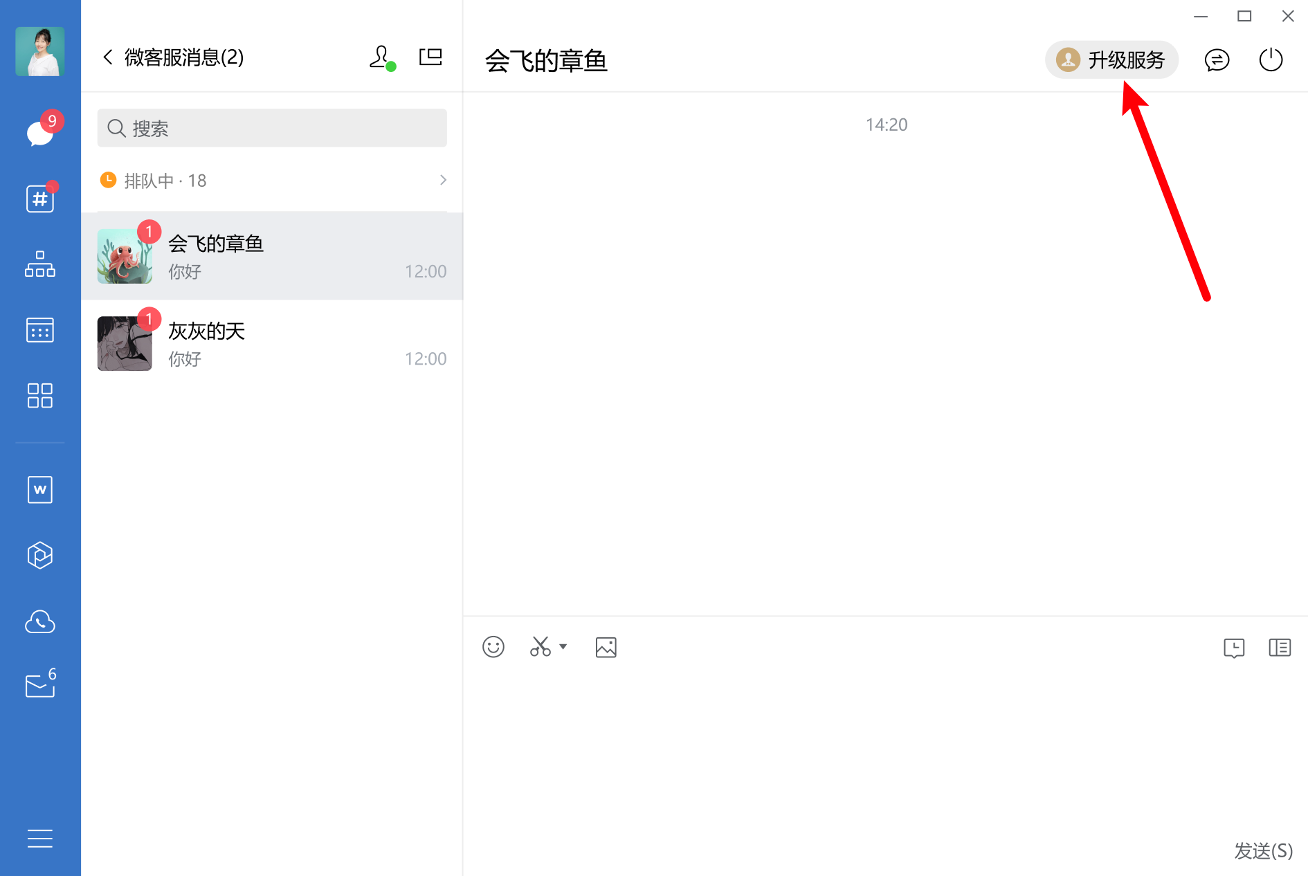 | type | 是 | 表示是升级到专员服务还是客户群服务。1:专员服务。2:客户群服务 |